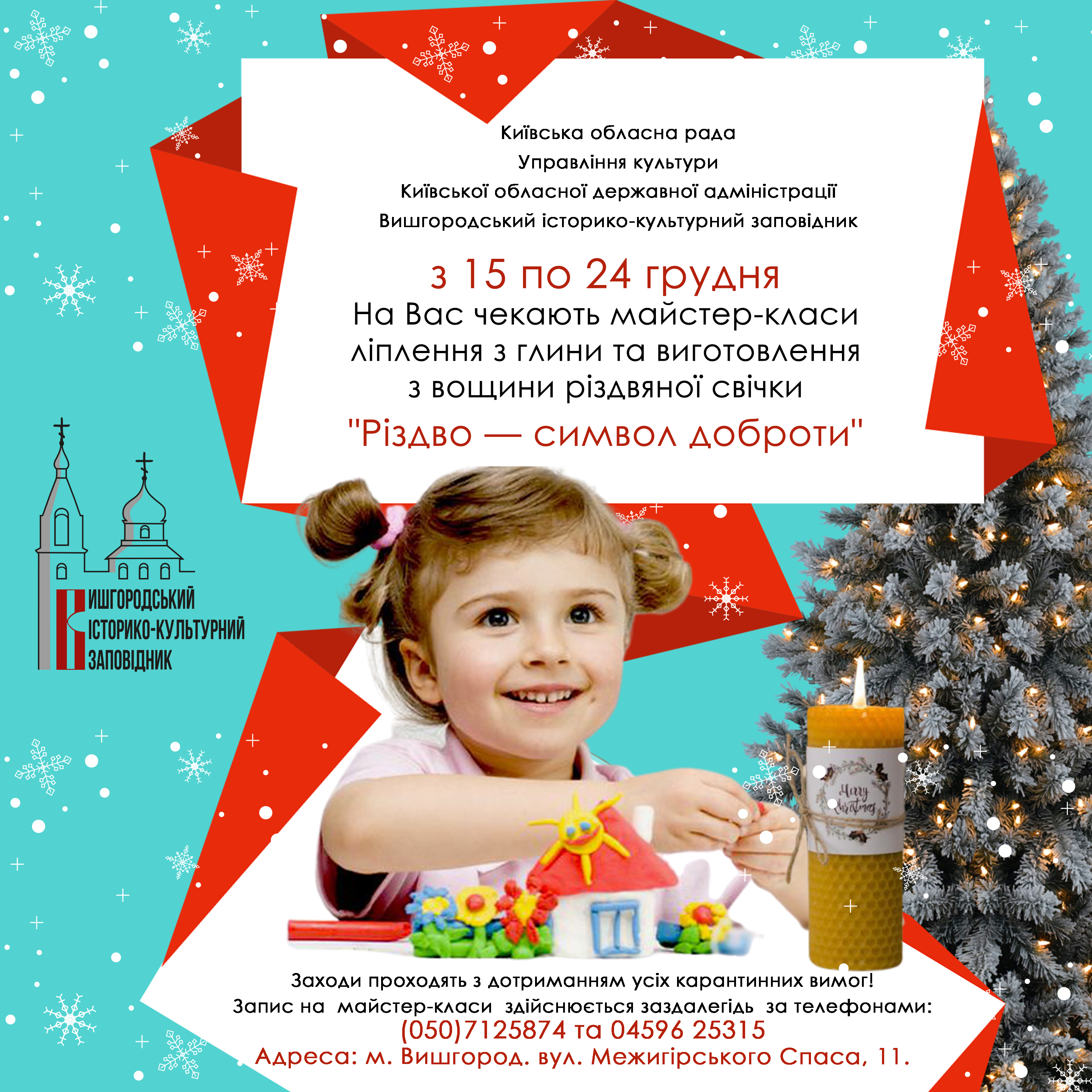 «Різдво- символ доброти» з 15 грудня по 24 грудня кожного дня чекає на вас цикл майстер-класів ліплення з глини та виготовлення з вощини «Різдвяної свічки».