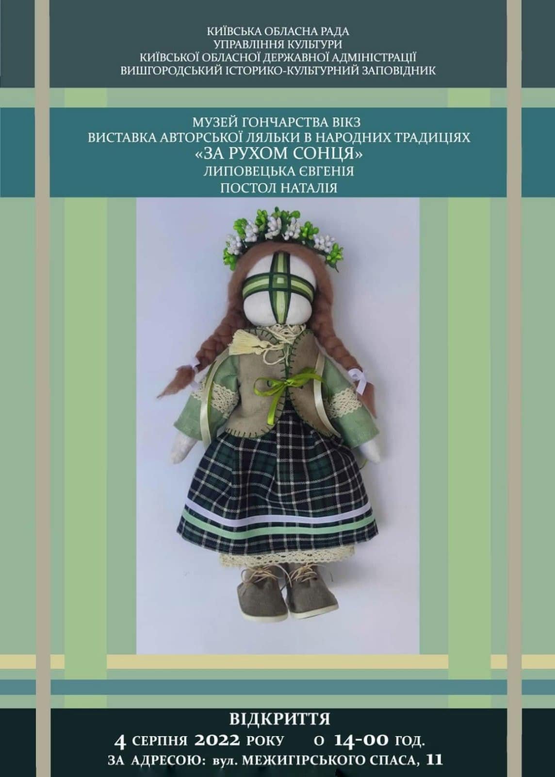 "ЗА РУХОМ СОНЦЯ" – виставка сучасної ляльки в народних традиціях, авторами якої є членкиня Нацiональної спiлки художникiв України,, викладачка Євгенія Липовецька та художниця, викладачка спецiальностi "Образотворче мистецтво, декоративно-прикладне мистецтво, реставрацiя" Нiжинського фахового коледжу культури i мистецтв iм. М. Заньковецької Наталія Постол.