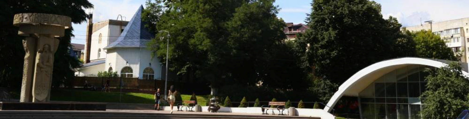 Decorative architecturally-sculptural composition with a fountain and four sculptures-images: the great Kiev prince Svyatoslav Igorevich (945-964), his unofficial wife Malusha and the great Kiev prince Volodymir Svyatoslavovich (979-1015) and one of his wives - Rogneda.